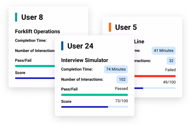 Once the headset goes on, teams lose visibility. There’s no easy way to know who was in the headset, if learners completed the training, how they performed, or where they struggled