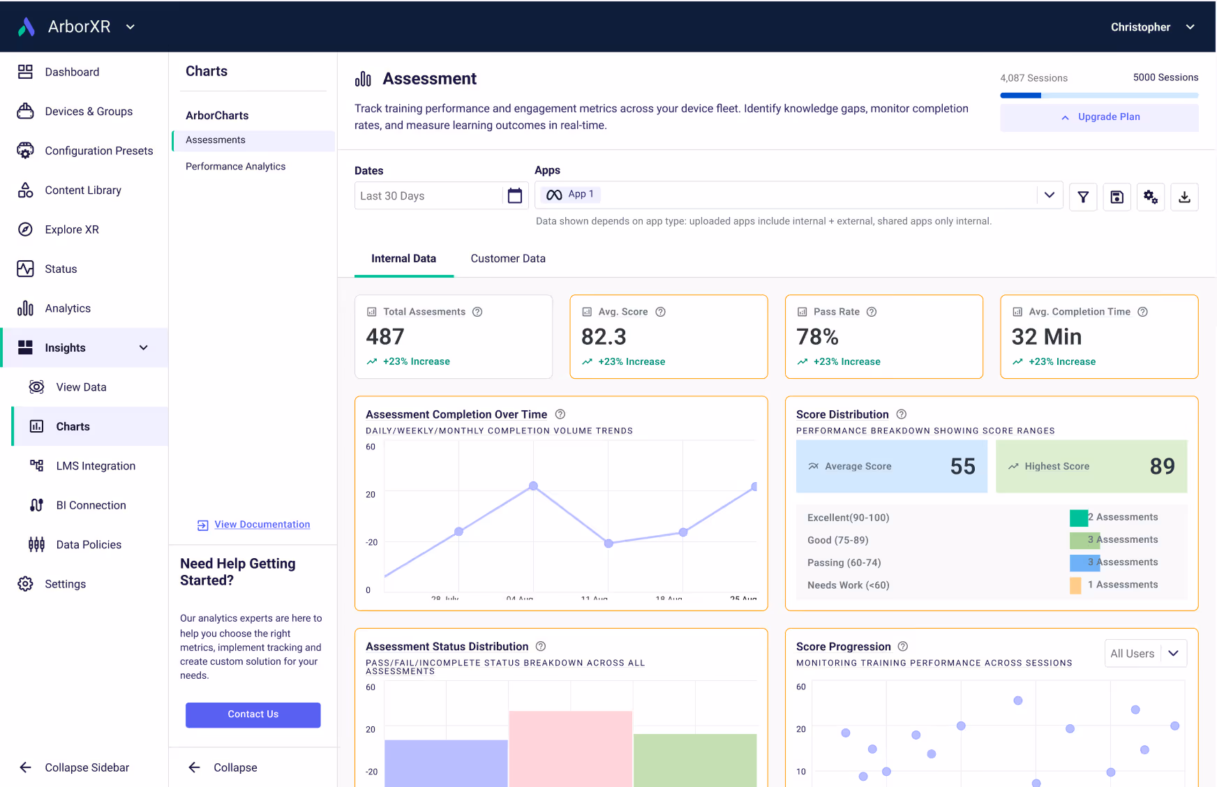 ArborXR Insights streamlines learner authentication, tracks performance, offers built-in reporting, and connects training data to your LMS and BI tools.