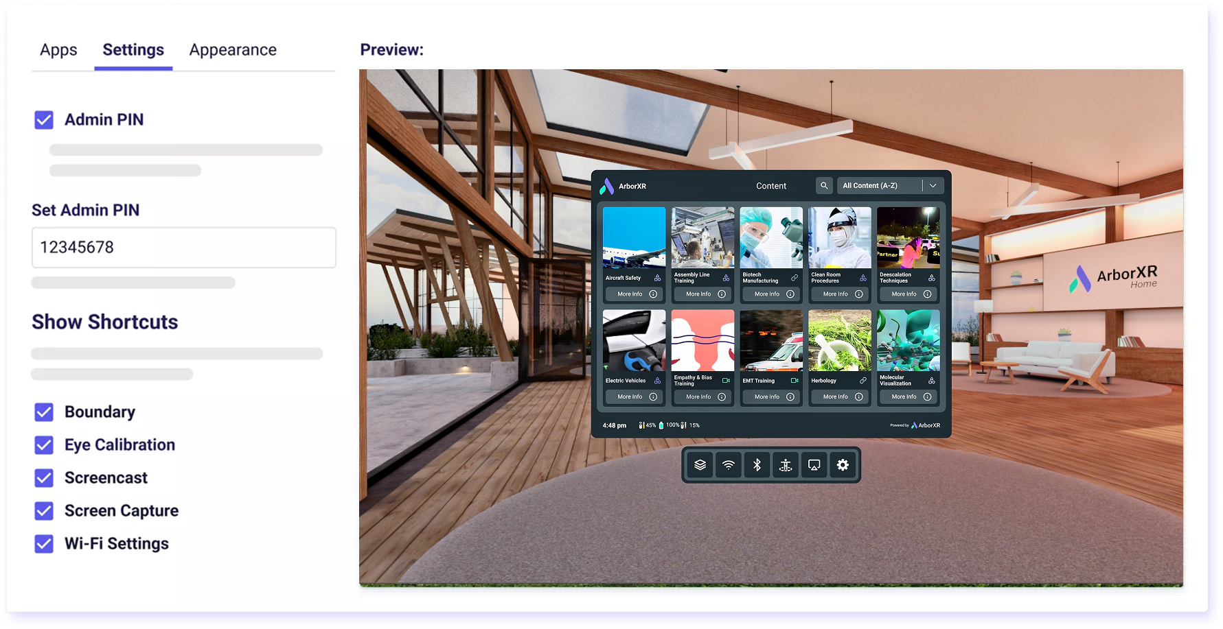 ArborXR Home allows you to guide users, customize the environment, moderate apps, and lock down the headset as you see fit.